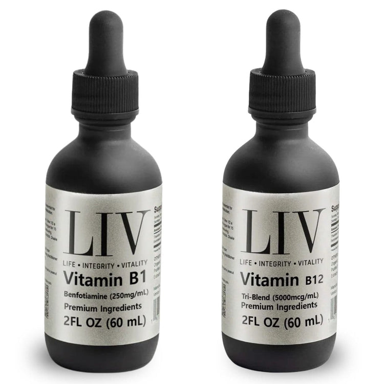 Includes: Vitamin B1 Thiamine Liquid Metabolic Booster (Benfotiamine 250mg, 60 servings), Vitamin B12 Tri-Blend Liquid Energy Booster (5000mcg, 60 servings), Vitamin B3 Niacin Liquid (Niacinamide 80mg, 60 servings), Vitamin B6 Pyridoxal Liquid (5-Phosphate 50mg, 60 servings), Vitamin B9 Folic Acid Liquid (5-MTHF 5,000mcg, 60 servings) Shop Now