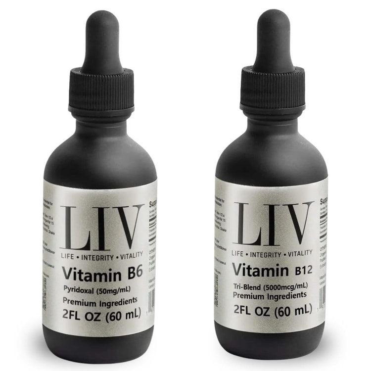 Includes: Vitamin B9 Folic Acid Liquid (5-MTHF 5,000mcg, 60 servings), Vitamin B12 Tri-Blend Liquid Energy Booster (5000mcg, 60 servings), Vitamin B6 Pyridoxal Liquid (5-Phosphate 50mg, 60 servings) Shop Now